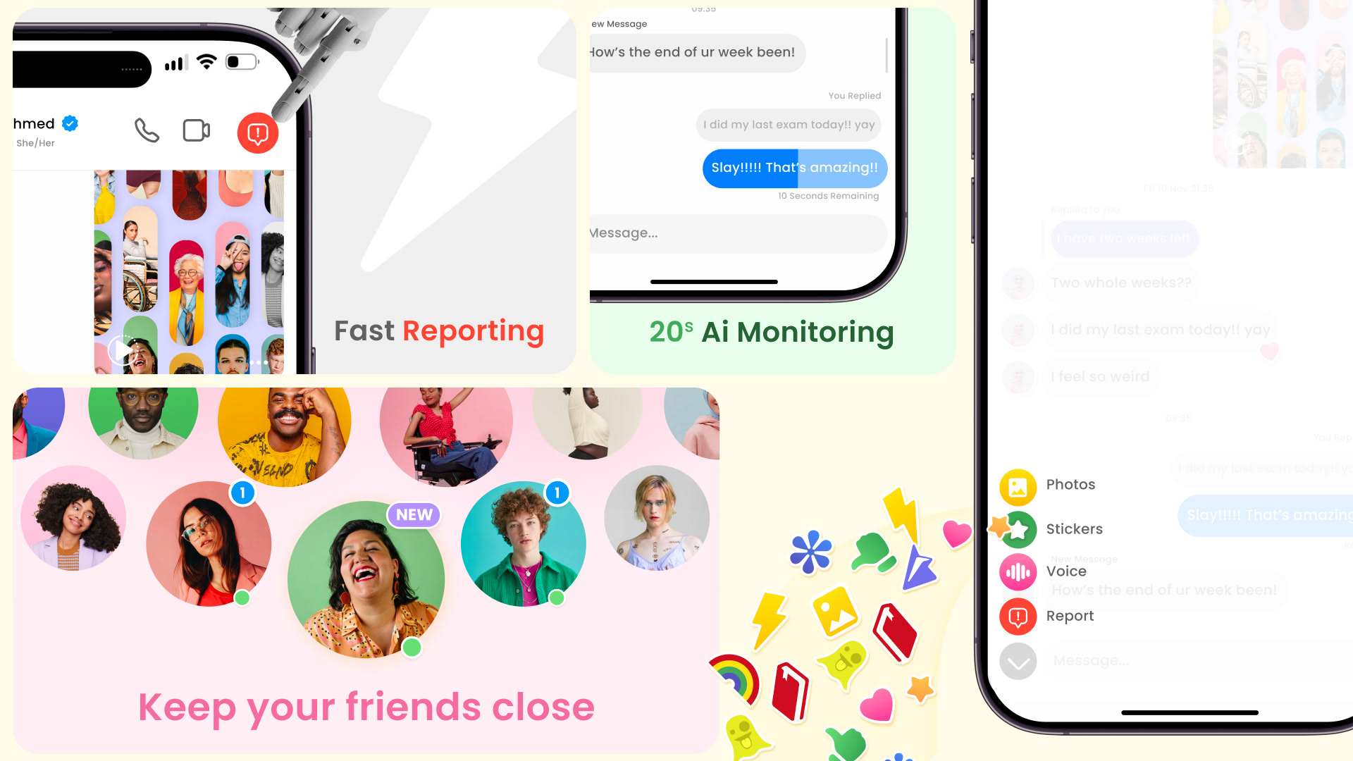Tasked with designing a preventative approach to online hate speech through an AI-powered social media platform that prioritises user safety and positive interactions, For the People™ features S navigation enhanced by interactive elements that facilitate genuine connection while employing sophisticated AI content moderation algorithms and community reporting tools to create an inherently safer digital environment. The visual identity balances accessibility with engagement through carefully selected colour palettes and typography that promote inclusivity and positivity.